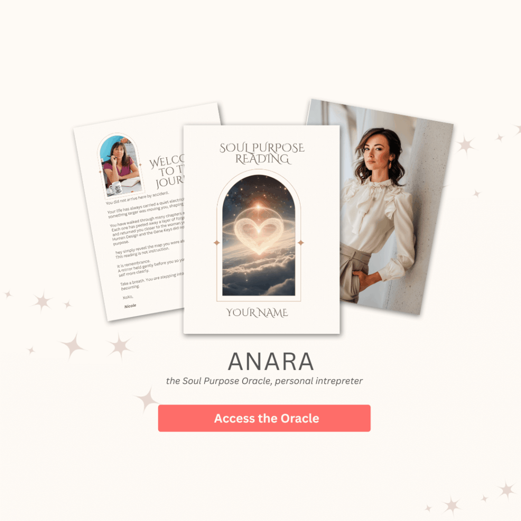 Following your Soul Purpose Session, you will have access to “Anara, the Soul Purpose Oracle” GPT for your further integration and specific, chart-based integration.